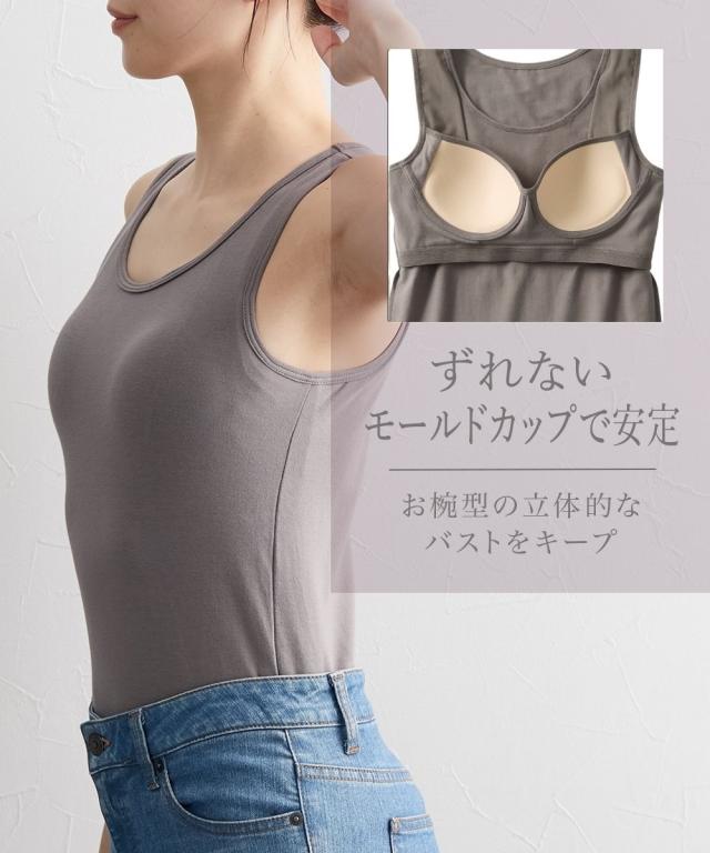 綿混 脇すっきり サポートブラトップタンクトップ