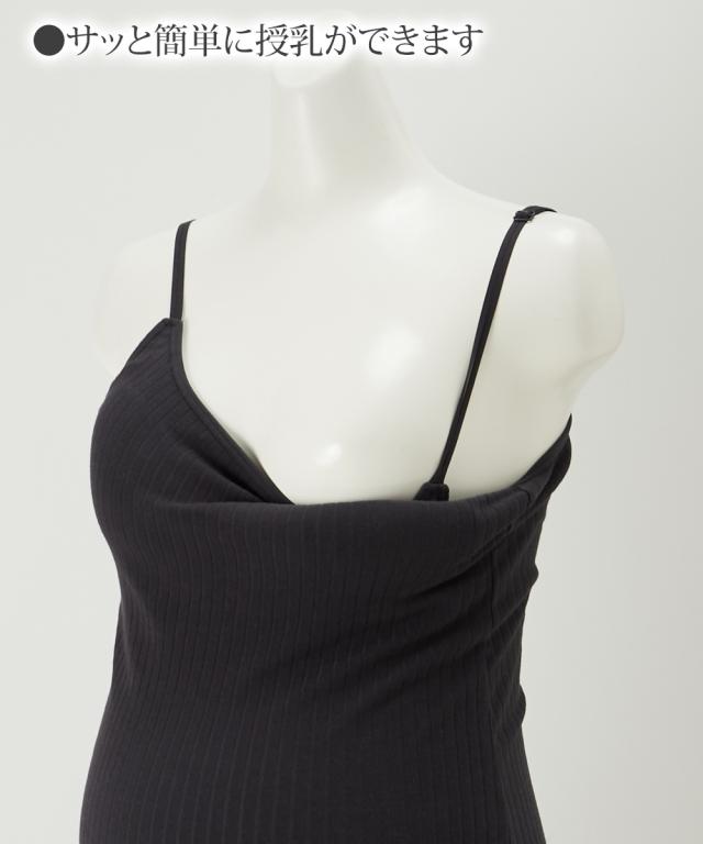 やわらかいリブ素材のカップ付き授乳キャミソールです。