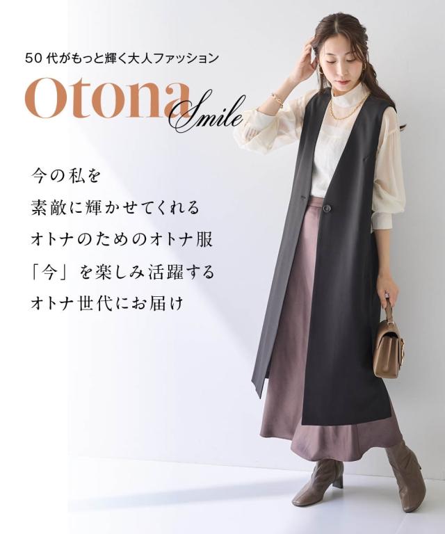 「OtonaSMILE」から、大人の女性を美しく魅せるロングジレが登場。シンプルなデザインと上品なカラーで、どんなコーディネートにも合わせやすく、着回し力抜群です。 ■デザイン さらっと羽織るだけで、こなれ感を演出。ロング丈が気になる部分をさりげなくカバーし、スタイルアップ効果も期待できます。いつものコーデを格上げする、大人のアイテム。一枚持っていると重宝するロングジレは、ワードローブにぜひ加えたいアイテムです。 ■素材 柔らかく肌触りの良い素材を使用しているので、快適な着心地を実現しました。 ■おすすめのスタイリング シンプルなデザインと上品なカラーで、どんなコーディネートにも合わせやすく、着回し力抜群です。 〜 『今』の私を素敵に輝かせてくれるオトナのためのオトナ服 『今』を楽しみ活躍するオトナ世代にお届け トレンドを取り入れたデザインと、素材や着心地にもこだわった、『今』着たいアイテムを取り揃え 〜
