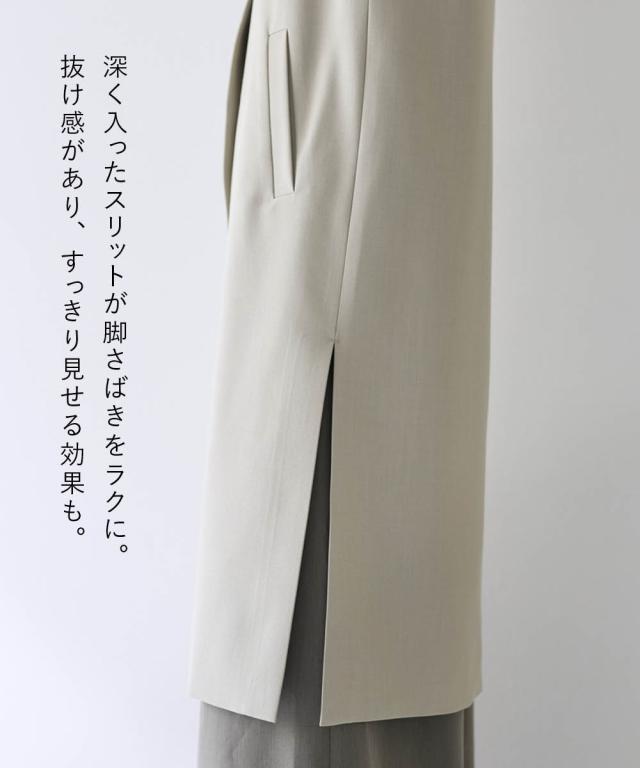 品質=ポリエステル98%・ポリウレタン2% 前ボタン開き(ボタン1つ) 両脇スリット