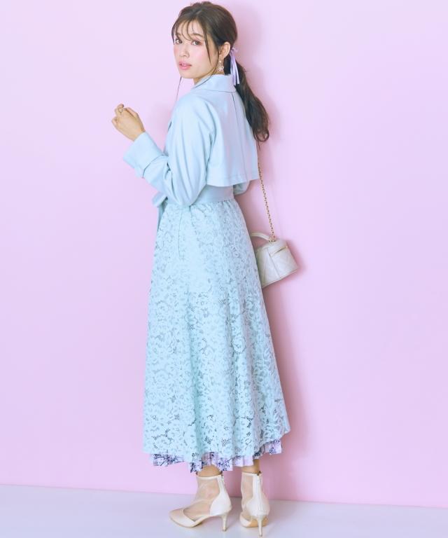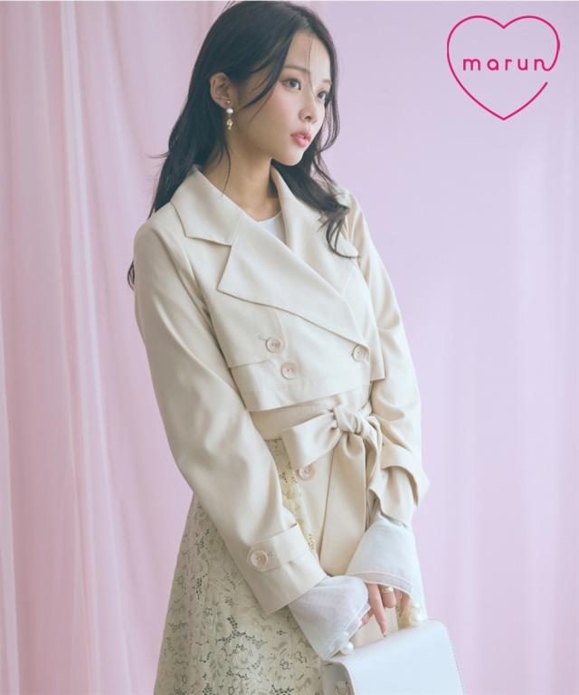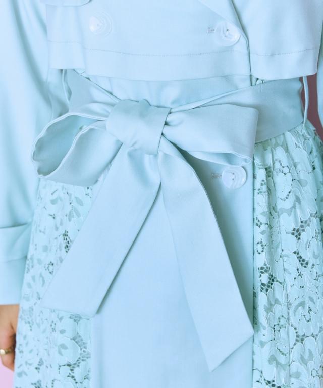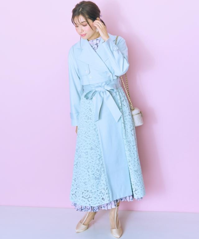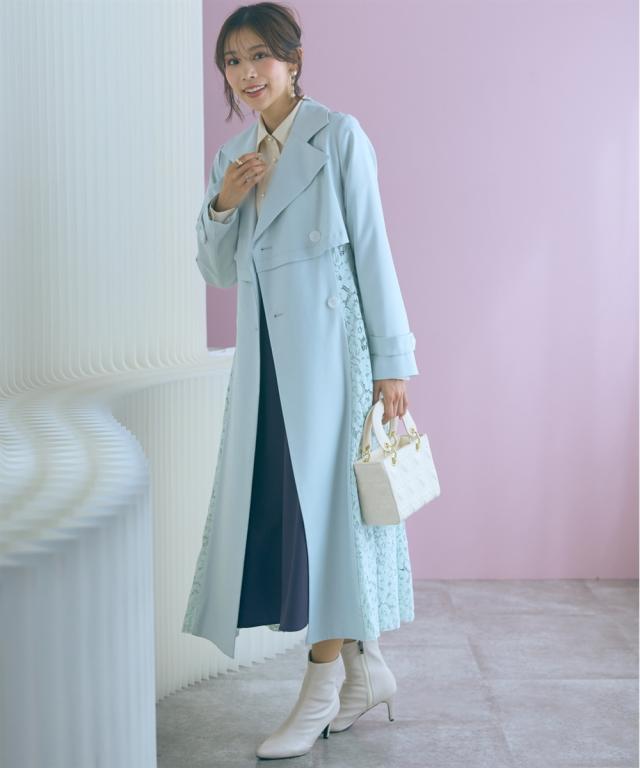 羽織るだけでオシャレ上級者になれるスプリングコート ■デザイン ・レースドッキングがオシャレなコート ・ベルトを閉めて着用しても可愛いシルエットに。 ■素材 柔らかい着心地の素材 ■おすすめのスタイリング ワンピースの上から羽織ったり、ベルトを締めて大人可愛い雰囲気のスタイリングもおすすめ