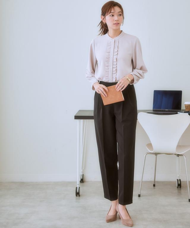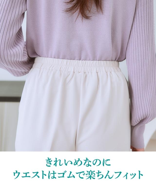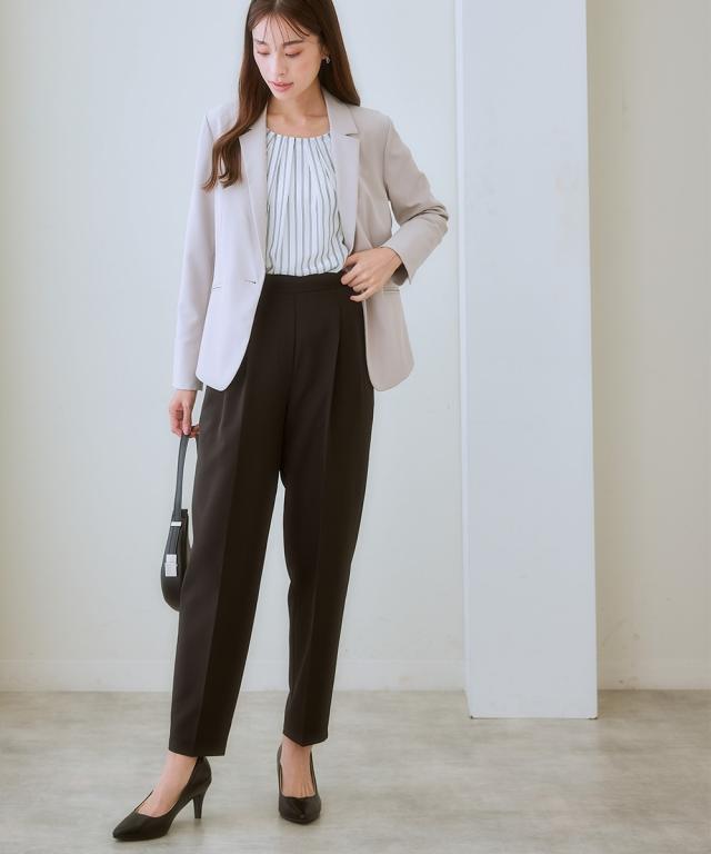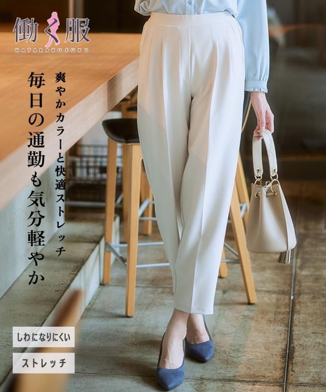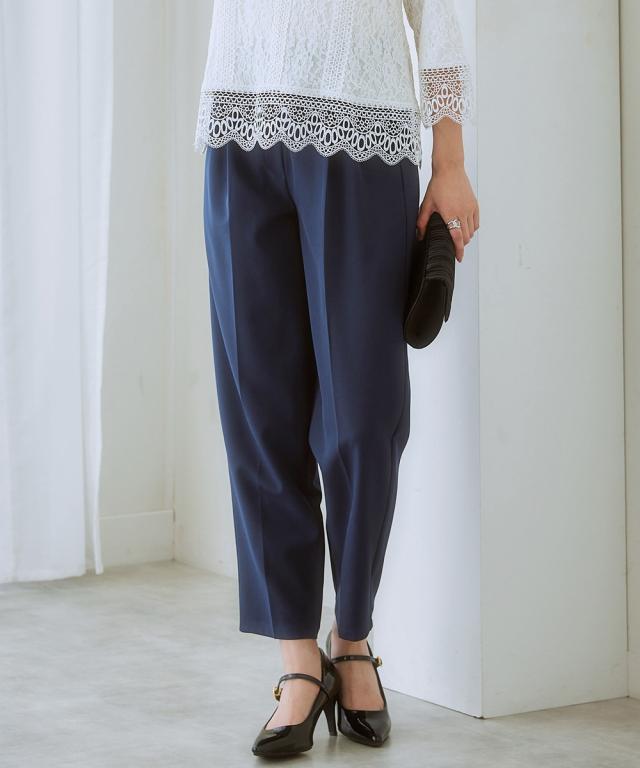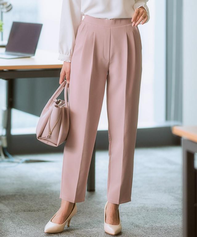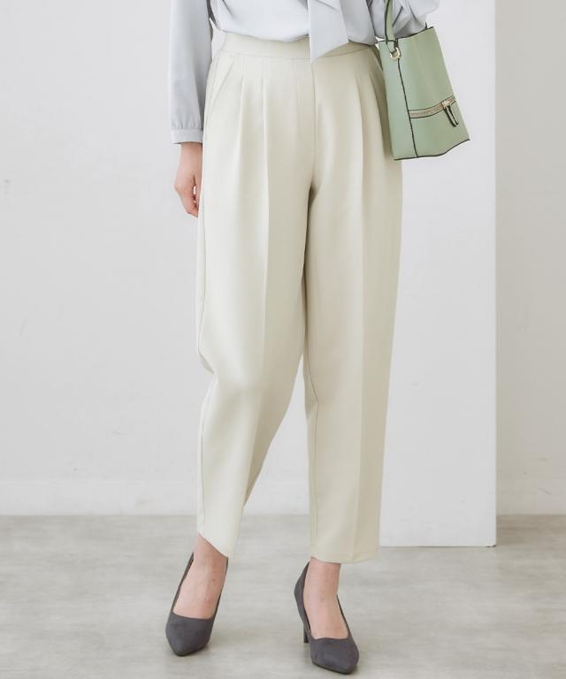 【きれい見えなのにリラクシーな履き心地】お腹や腰まわり、脚の美しさを考えたパターン設計。ワードローブの必需品きれいめテーパードパンツ。■ポイント ・美しく細見え効果のあるテーパードライン。 ・シルエットがすっきり見えてリラックスできる履き心地。■デザイン ・縦のラインを強調するセンタープレス仕様の細見えシルエット。 ・タック位置や折り込む深さを調整したフロントツータックデザインで、お腹まわりフラット見せ。 ・着脱しやすい後ろゴム仕様ながら締め付け感のないリラックスした着心地。 ・きれいめなのにイージーなはき心地のバックウエストゴム仕様。■素材 ・ストレッチ性のある素材感、高見えするダブルクロス素材。■おすすめのスタイリング ・きれいめブラウスと合わせたオンスタイルはもちろん、シアートップスなどカジュアルアイテムとも好マッチ。〜7days Life Styling〜 仕事の日、休日、イベントの日まで、 働く女性の毎日を商品やコンテンツを通して、 自分らしく快適でいられる“働く服改革”をサポートします。