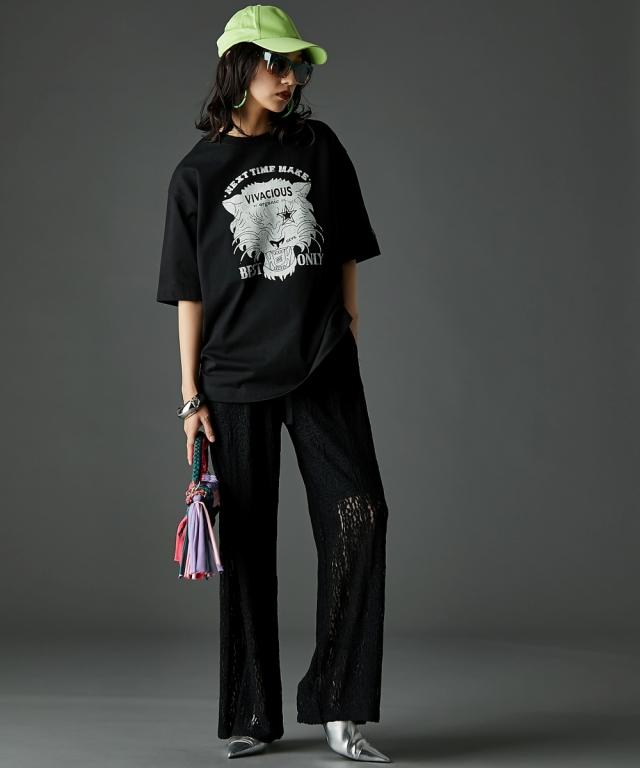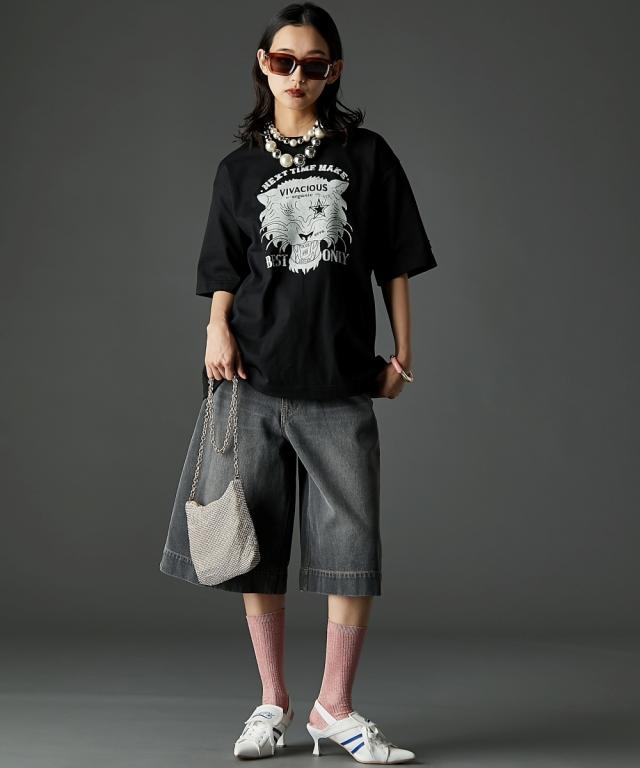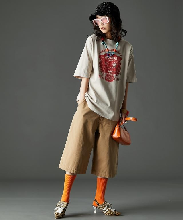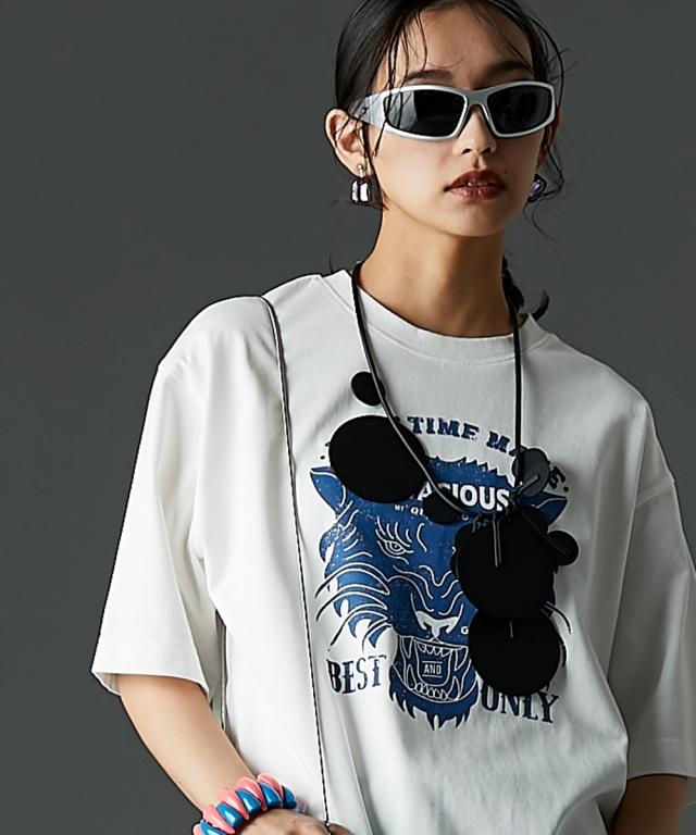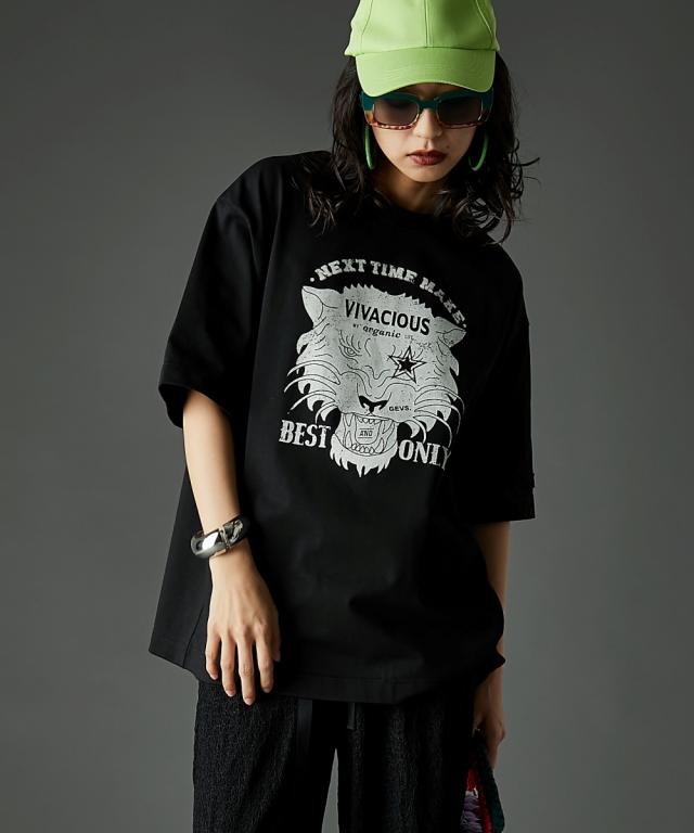 タイガー柄グラフィックプリントTシャツ。 ■デザイン 程よいサイズ感のTシャツにタイガー柄のグラフィックプリントを施しました。 ■素材 綿100%の天竺素材を使用しました。目が詰まった薄くない、滑らかな肌触りが特徴の素材です。 ■おすすめのスタイリング どんなアイテムにも合わせやすく、合わせるボトムで雰囲気を変えられるトップスです。