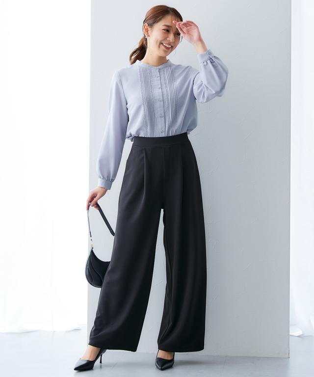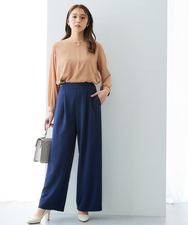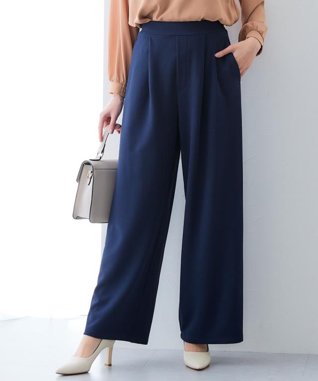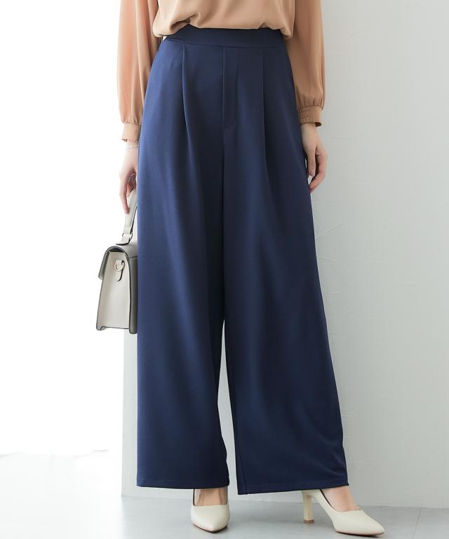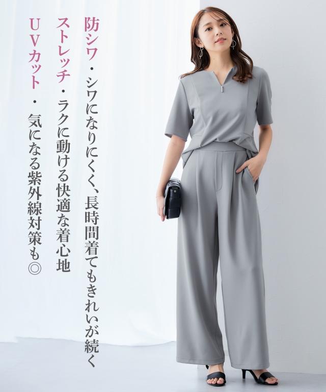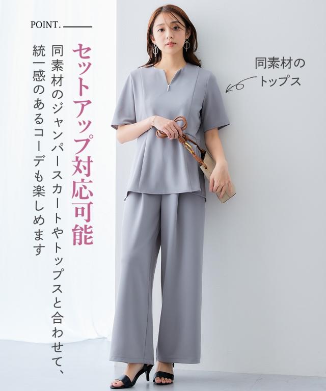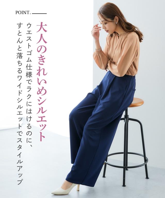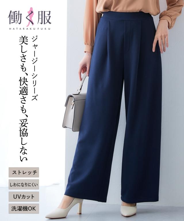 ■デザイン ストンと落ちるワイドシルエットでスタイルアップ。 抜け感がありお仕事コーデに必須のワイドパンツ。 おなか周りをカバーしてくれるタック入りデザイン。 ウエストは後ゴム入りなので、すっきり見せるのに着心地は快適。 ■素材 素材はジョーゼットのように見えて伸縮性抜群のジャージー素材。 動きやすく着心地も楽なのでくせになる着用感 また、自宅で手洗い可、しわになりにくいのでアイロン不要のうれしいアイテム 同素材のトップスを合わせて上下セットアップでも、それぞれ単品でも着回し自在 〜働く服〜 nissenの通勤服専門ブランド。 仕事の日、休日、イベントの日まで、 働く女性の毎日を商品やコンテンツを通して、 自分らしく快適でいられる“働く服改革”をサポートします。