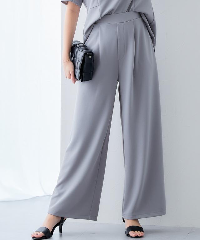 【ジャージーシリーズ】カットソーワイドパンツ(ストレッチ・しわになりにくい・UVカット)