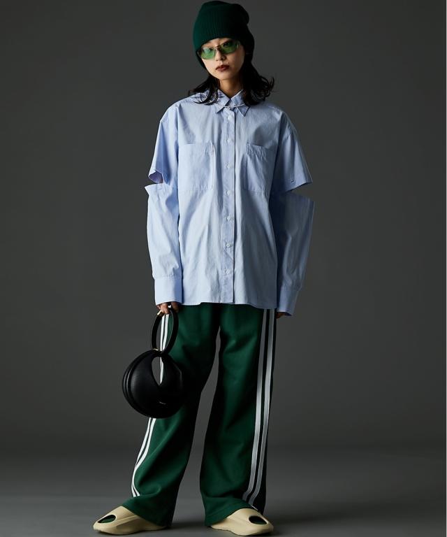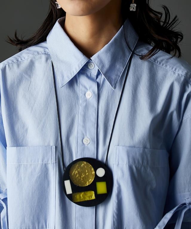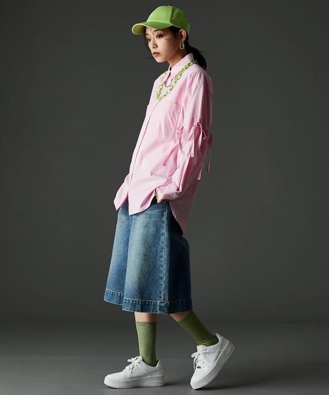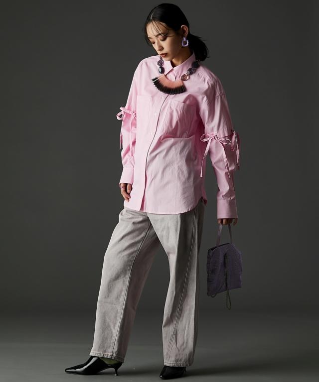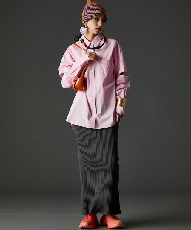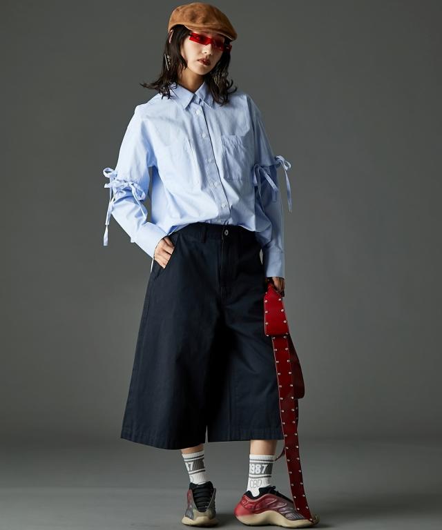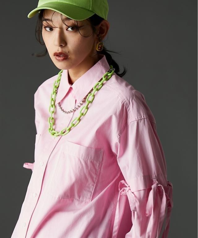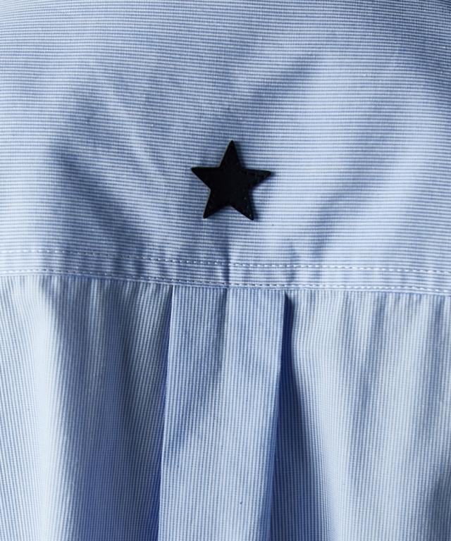 アレンジでイメージが変わるストライプシャツ。 ■デザイン 通気性もよく軽い着心地でシーズンを問わず長い時期着ていただけます。 肌離れのよい爽やかなタッチで心地のよい着やすさとなっております。 袖はリボンを外す事で長袖と半袖の2パターンを楽しんでいただけるデザイン。 袖下2箇所をボタンで袖を止める事でスリットスリーブにもできます。 ゆったりとしたオーバーシルエットで体系カバーもでき、着心地の抜群。 ■素材 綿100%のストライプ生地を使用。 ■おすすめのスタイリング いろんな袖にできるアレンジが効くシャツ。 半袖にリボンを残した着方がオススメです。 ボトムはスカートでもパンツでも合わせやすく、袖のアレンジとボトムとの組み合わせでイメージを変えられるシャツです。
