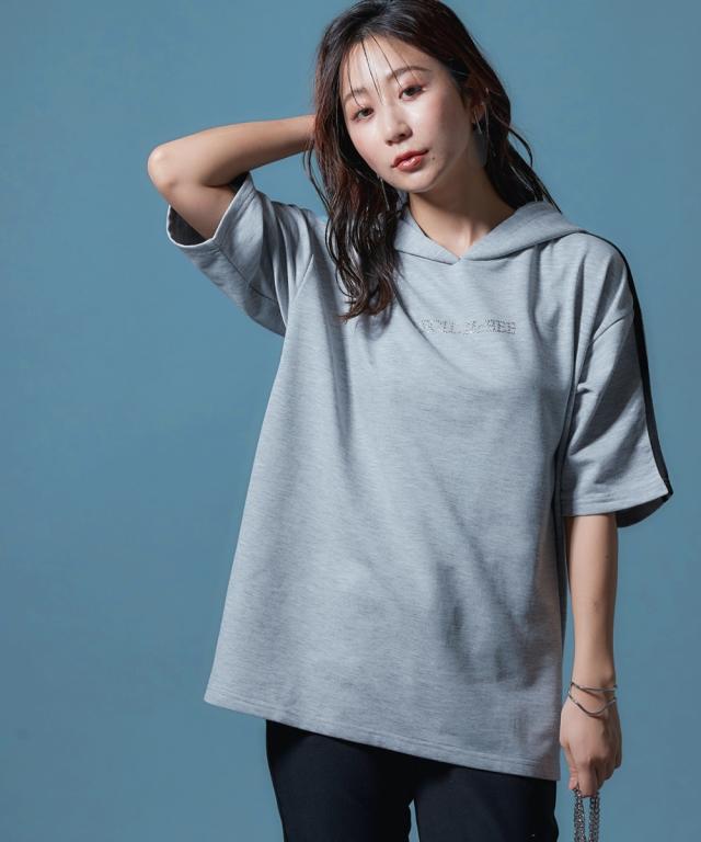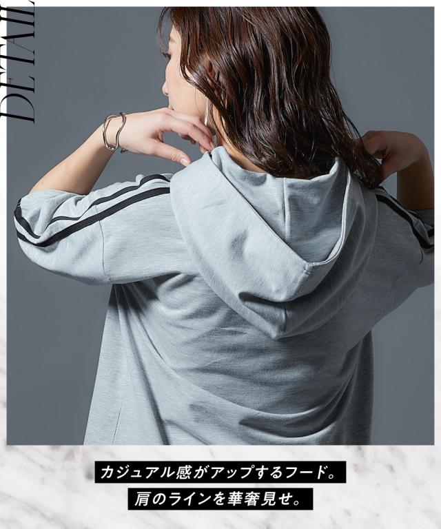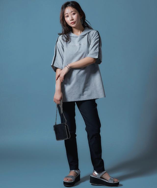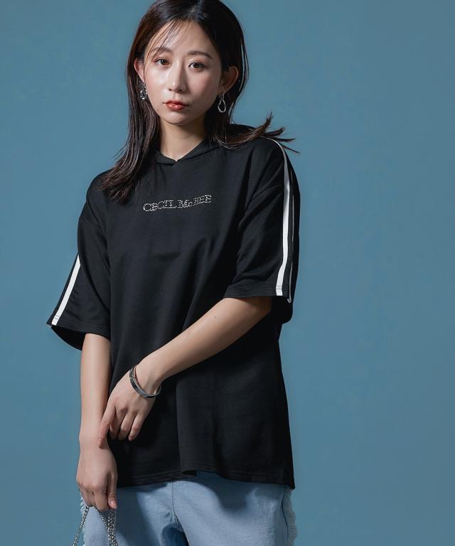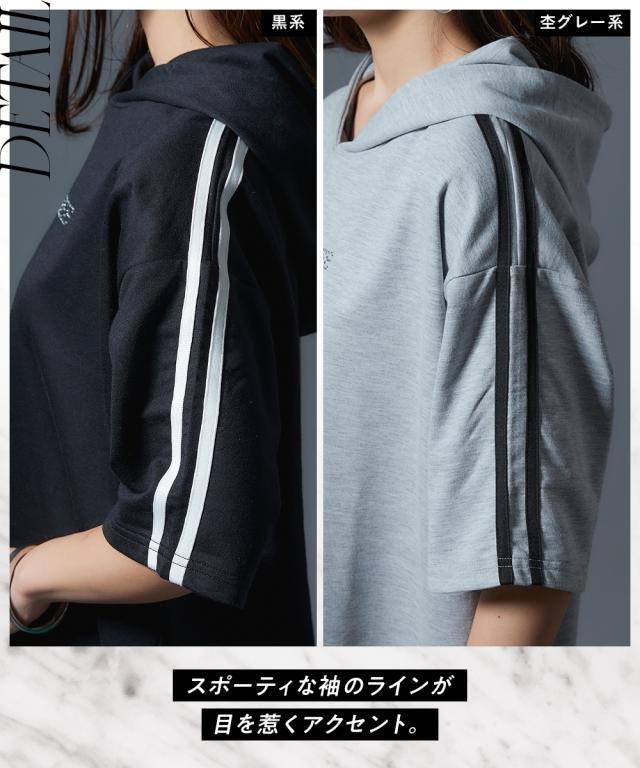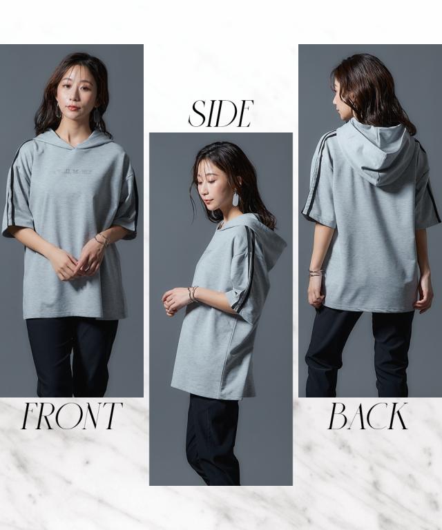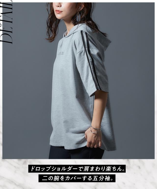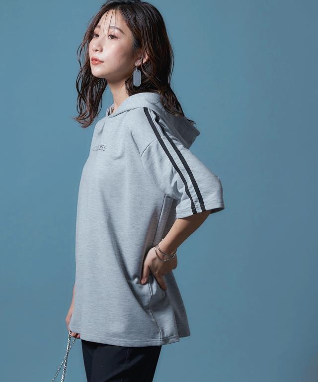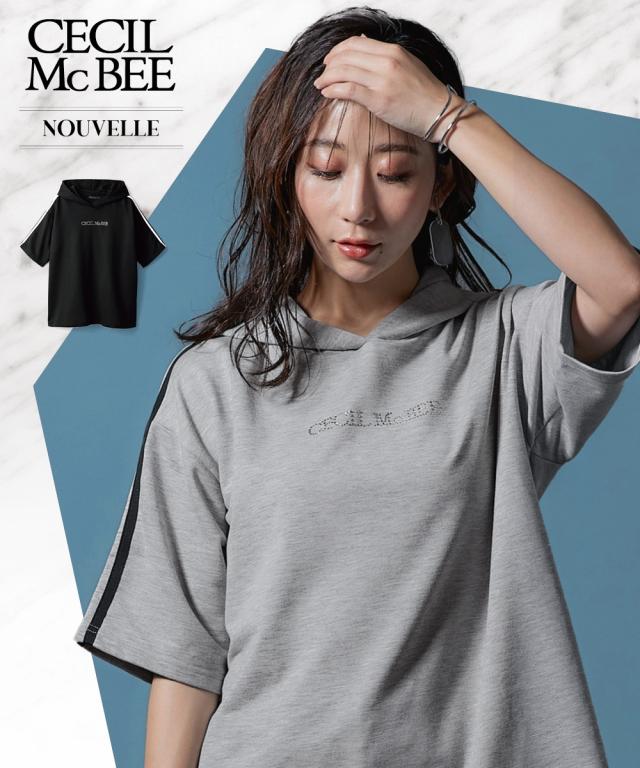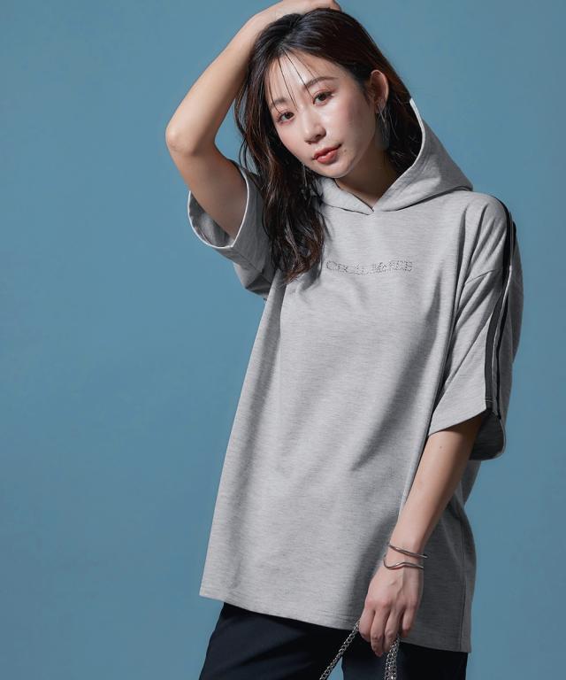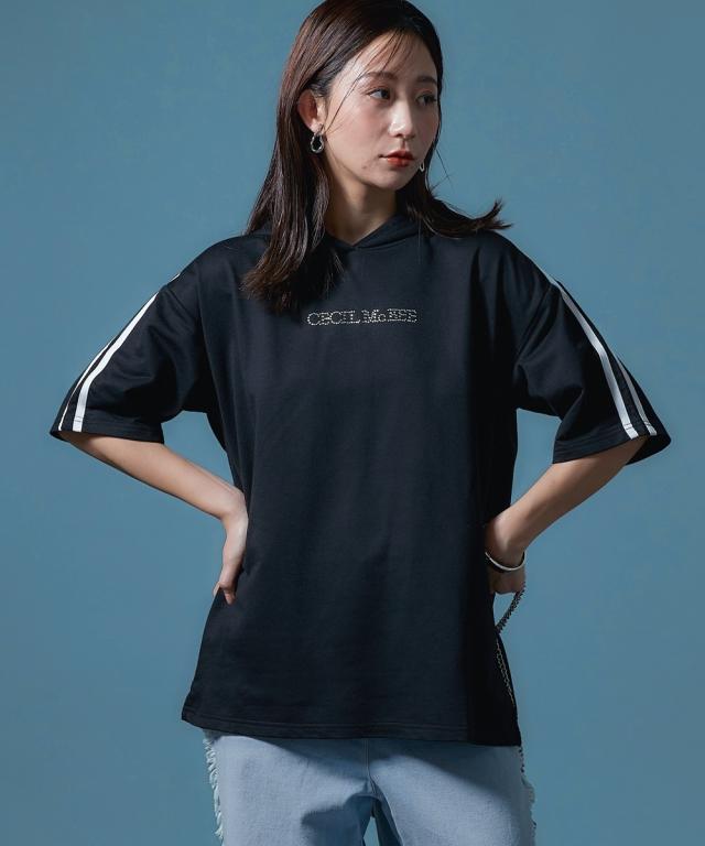 【CECIL McBEE】袖ライン入5分袖パーカー