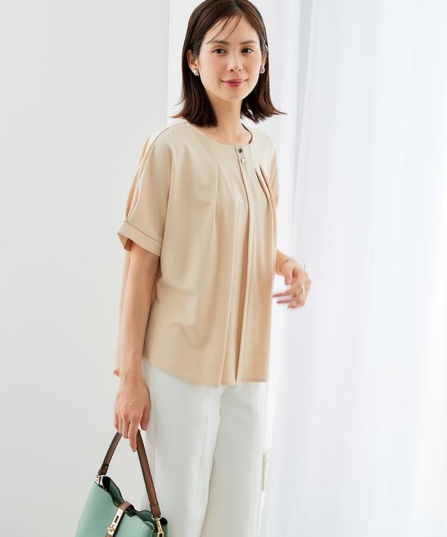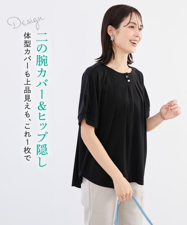 ブラウスのきちんと感は欲しいけど暑いから窮屈感はイヤ!そんなお悩みを解決する楽キレイトップス ■デザイン ・メタルボタンのアクセントで上品顔周り華やかな印象に ・二の腕とヒップもカバーする絶妙なデザイン ■素材 ・きちんととキレイを両立する伸縮素材 ・快適機能満載でストレスフリー ・お手入れ簡単!洗濯機OK ■おすすめのスタイリング パンツにもスカートにも合わせやすい万能デザイン 〜働く服〜 nissenの通勤服専門ブランド。 仕事の日、休日、イベントの日まで、 働く女性の毎日を商品やコンテンツを通して、 自分らしく快適でいられる“働く服改革”をサポートします。