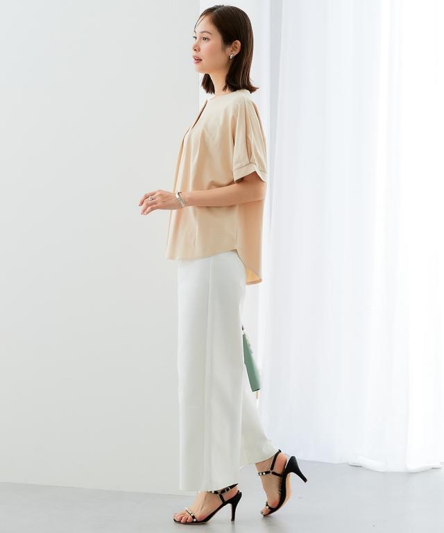 Tシャツ カットソー レディース ブラウス 見えシルケットポンチメタルボタンタックドルマン トップス 有 S/M/L/LL ニッセン nissen