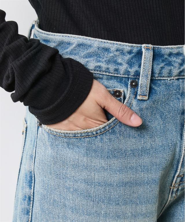 綿100%ヴィンテージ風9分丈デニムパンツ シックスタイル
