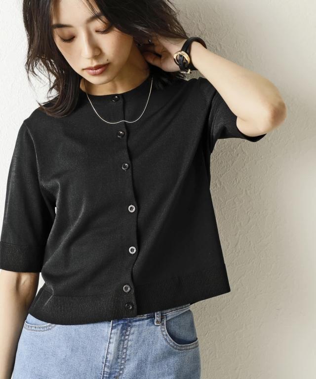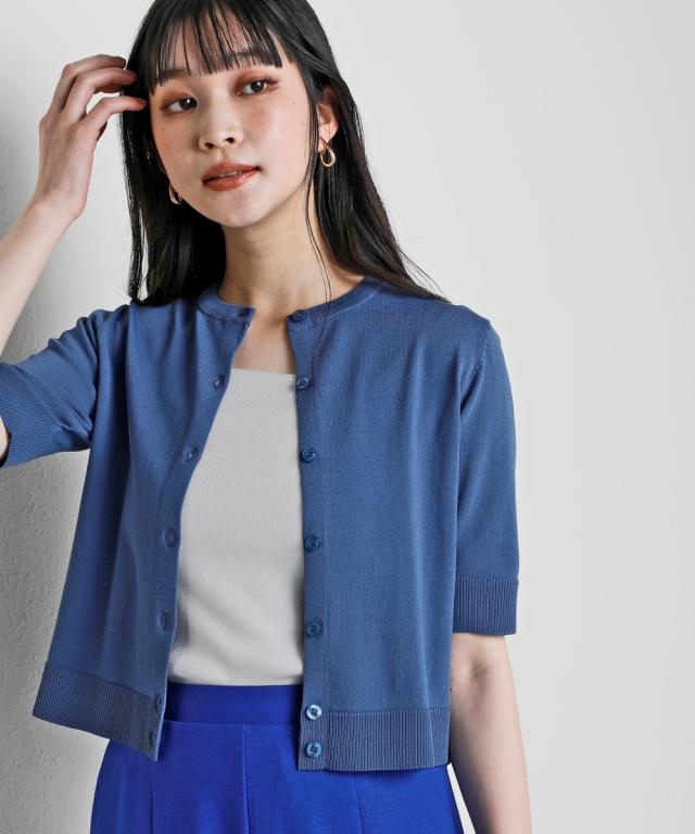 カーディガン ニット レディース クルーネック 5分袖 持続冷感 接触冷感 毛玉になりにくい UVカット 洗濯機で洗える 遮熱