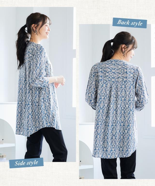 大きいサイズ 接触冷感うすカル柔らか7分袖ダブルポケットシャツチュニック