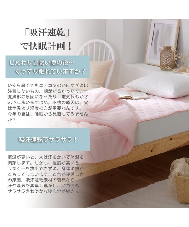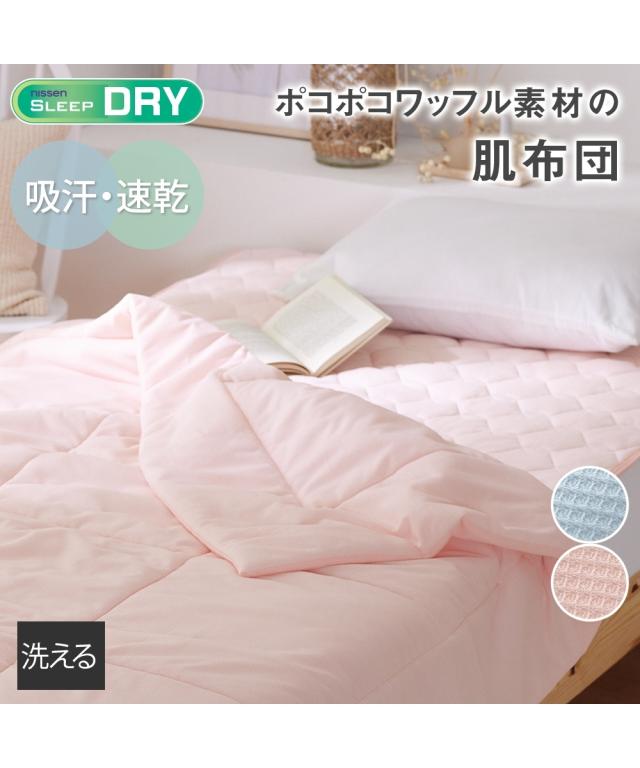 じめじめした日本の夏。寝苦しい夜に、快適な睡眠をお届けする【吸汗速乾ワッフル洗える肌掛け布団】です。吸汗速乾なので、汗を素早く吸収・発散。サラッとした肌触りで、寝汗をかいてもベタつきにくいです。ワッフル生地の凹凸が、肌との接触面積を減らし、通気性をアップ。熱がこもりにくく、涼しく快適。\ MD voice /非常にお買い得価格ながらも、素材に拘ったワッフル素材の寝具です。是非お手に取っていただけたら嬉しいです!●種類【肌掛け布団】肌変え布団は、キルティング加工が施された薄手の掛け布団です。生地の間には中綿が入っており、肌掛け布団よりも軽く、タオルケットよりも厚みのある寝具です。春〜夏にかけてだけでなく、他の掛け布団と組み合わせれば一年中使用できるのが特徴です。●色展開2色展開!ピンク・ブルーの2色展開です。優しいお色味で寝室を明るくコーディネートしてくれる2色でおとどけいたします。●サイズ展開シングルサイズでのご用意になります。●お手入れ方法洗濯機で丸洗い可能。気兼ねなく洗濯をすることで、いつでも清潔にお使いいただけます。