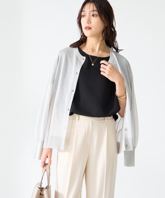 「毎日着たくなる、涼しい一着。」 暑い時期に嬉しい!「接触冷感」ニットに透け感で差がつく高見えニットが登場!! ■デザイン 羽織るだけでおしゃれを演出できるシアーカーディガン。 オフィスからカジュアルまで、様々なシーンで活躍すること間違いなしの万能カーディガンです! ■素材 さらっと清涼感のある肌触りで快適な着心地です。 毎日着れるものだからこそ、素材にこだわりました。 ・暑い夏に嬉しいひんやり素材 ・毛玉になりにくく、きれい長持ち ・洗濯機で洗えるのでお手入れもラクラク ■おすすめのスタイリング カジュアルなスタイルには、Tシャツの上にさらりと羽織ってこなれ感を演出。 オフィスシーンでは、ブラウスやカットソーに合わせれば、上品な着こなしに。 様々なアイテムの上から軽い印象で羽織っていただけます。 定番だからこそ、あなたのワードローブに欠かせない一枚になるはずです。