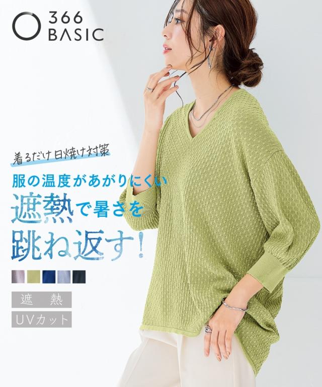 「毎日着たくなる、涼しい一着。」 毎年大人気!遮熱機能のニットシリーズです。 ■デザイン 後姿にもこだわったゆとり感のあるニット。 表情のある編地とゆるシルエットで、着るだけでコーディネートが格上げできる1枚です。 ■素材 暑さを跳ね返す特殊な生地を使用。嬉しいUVカット機能付きで、日焼け対策もバッチリです。 ※着用の条件下により、熱を遮る温度差が異なる場合があります。 ■おすすめのスタイリング ゆったりシルエットと長め丈なので、コンパクトなボトムとの相性抜群です!