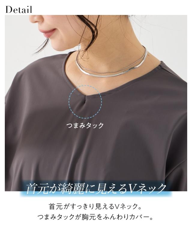 Tシャツ カットソー 大きいサイズ レディース 爽快タック使いゆるシルエット5分袖 プルオーバー 吸汗速乾 イージーケア UVカット ストレッチ 有