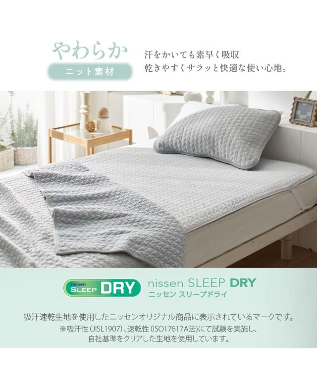 ひんやり冷感イブルとやわらかニットのリバーシブル枕パッドで、寝苦しい夜も快適に!接触冷感面は接触サラリとしており、触れた瞬間にひんやりとした涼しさを感じられます。ニット面は肌触りが良く、やわらかな風合いで快適な寝心地です。●ブランド・シリーズ【CocoFeel】ココフィールってCoco Feel 『ココフィール』は、肌触りの「ここち良さ」にトコトンこだわったニッセンの寝具を中心としたオリジナルブランドです。ここち良さに包まれて眠りたい。をコンセプトに、ここち(心地)良さ・快適(Comfortable)を感じていただける寝具を、心(こころ)を込めて。デザイン性や機能性はもちろん、肌触りの良さにこだわった寝具で眠る幸せをお届けしたい。ニッセンのCoco Feelシリーズは、お一人お一人の眠りに寄り添います。触れると幸せを感じるような快適(comfortable) さを、こころを込めてお届けします。【nissen SLEEP DRY】スリープドライって吸汗速乾生地を使用したニッセンオリジナルの商品です。吸汗性・速乾性があるため寝汗を素早く吸い取り、速く乾くためドライで快適。吸汗性試験 (JISL1907) (ISO17617A)を実施し、自社基準をクリアした生地を使用しています。●シーズン特性・春 ・夏