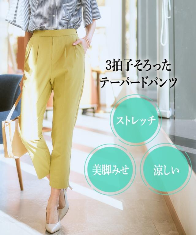 ドライタッチストレッチテーパードパンツ(ストレッチ・接触冷感・UVカット)