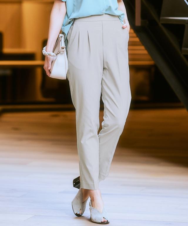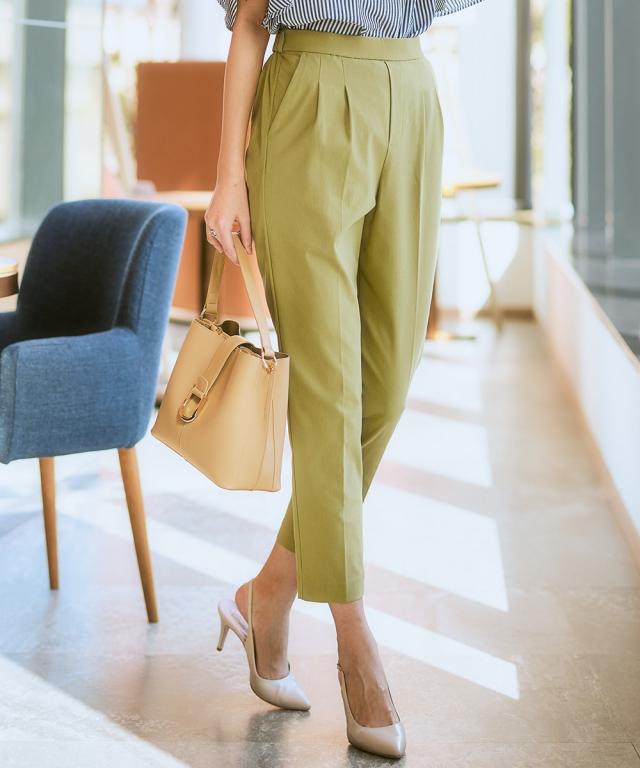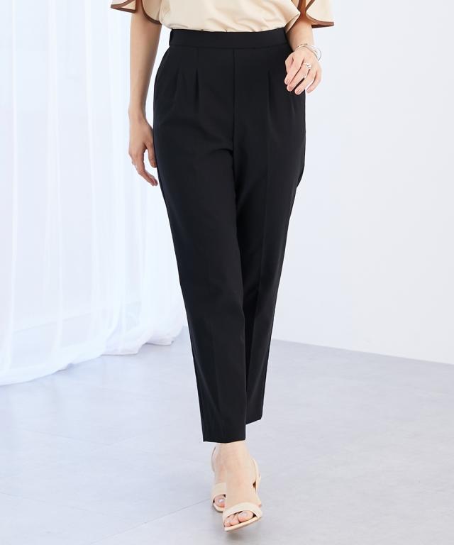 ■デザイン ・ぴったりしすぎず、ゆるすぎないシルエットが魅力のテーパードパンツ。 ・フロントのタック×センタープレスが全体をすっきりと見せてくれます。 ・ウエストはバックゴム仕様なのではき心地 ・さらりと軽やかな素材感でロングシーズン着用いただけるのもポイントです。 ・お仕事シーンからデイリーまで、様々な着こなしが楽しめる万能パンツは、まずワードローブに加えたいアイテムです。 ・ツータック仕様でおなかやヒップまわりもさりげなくカバーしてくれる頼れるパンツです! ■素材 サラっとしたドライタッチな手触り。きれいめな表面感なのにストレッチが効いているので動きやすく快適!夏にうれしい接触冷感機能素材なのもうれしいポイントです ■おすすめのスタイリング コンパクトなサイズ感のブラウスやジャケット合わせでバランスよく着こなすのがおすすめです 〜働く服〜 nissenの通勤服専門ブランド。 仕事の日、休日、イベントの日まで、 働く女性の毎日を商品やコンテンツを通して、 自分らしく快適でいられる“働く服改革”をサポートします。