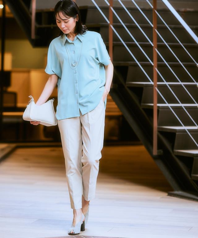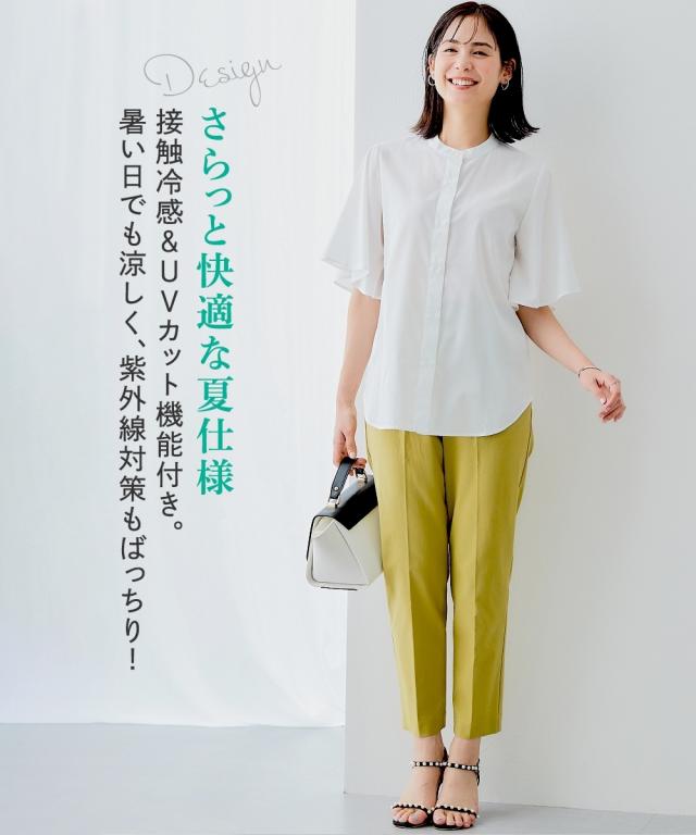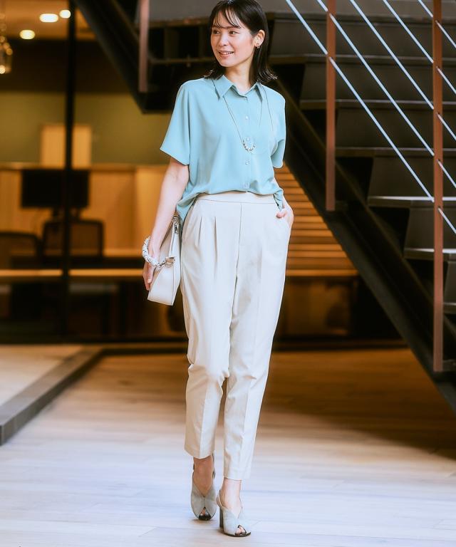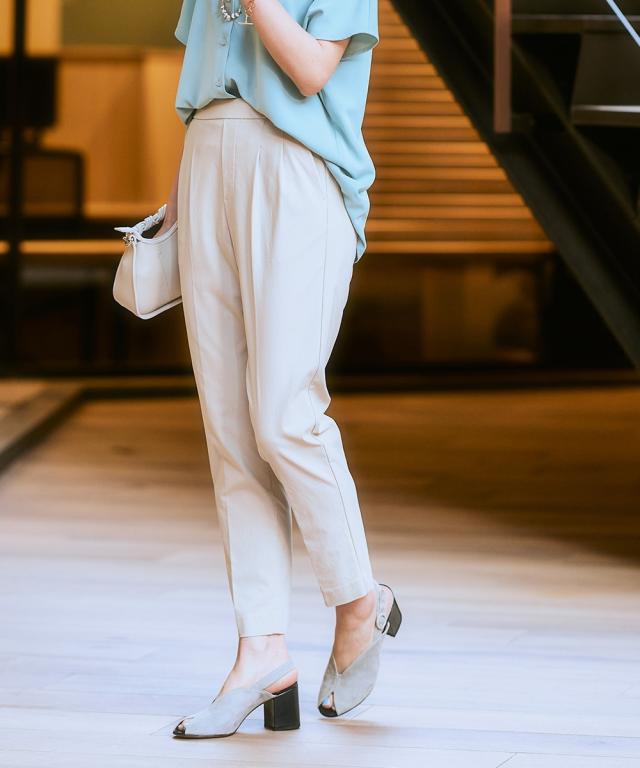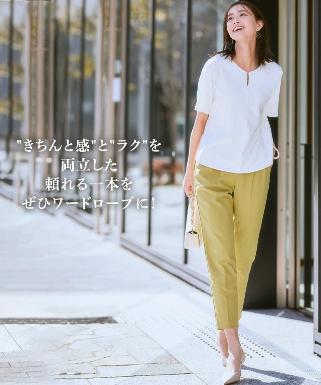 ■デザイン ・ぴったりしすぎず、ゆるすぎないシルエットが魅力のテーパードパンツ。 ・フロントのタック×センタープレスが全体をすっきりと見せてくれます。 ・ウエストはバックゴム仕様なのではき心地 ・さらりと軽やかな素材感でロングシーズン着用いただけるのもポイントです。 ・お仕事シーンからデイリーまで、様々な着こなしが楽しめる万能パンツは、まずワードローブに加えたいアイテムです。 ・ツータック仕様でおなかやヒップまわりもさりげなくカバーしてくれる頼れるパンツです! ■素材 サラっとしたドライタッチな手触り。きれいめな表面感なのにストレッチが効いているので動きやすく快適!夏にうれしい接触冷感機能素材なのもうれしいポイントです ■おすすめのスタイリング コンパクトなサイズ感のブラウスやジャケット合わせでバランスよく着こなすのがおすすめです 〜働く服〜 nissenの通勤服専門ブランド。 仕事の日、休日、イベントの日まで、 働く女性の毎日を商品やコンテンツを通して、 自分らしく快適でいられる“働く服改革”をサポートします。