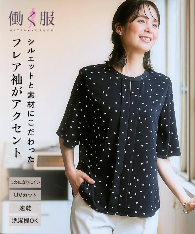 【機能生地で仕立てたシンプルデザインのシャツ】スーツによく合い、1枚でもきれいに着こなせるこだわり設計。毎日のオフィススタイルに重宝します。 ■ポイント ・滑らかでとろみのあるストレッチパウダーサテンシリーズ。 ・何気ないのに美しいシルエットが女性らしさを引き立てる、こだわりのシャツ。 ・お値頃な価格も 。 ■デザイン ・メタルパーツがさり気ないアクセントのキーネックのブラウス。 ・フレア袖で気になる二の腕もカバー ・1枚でもジャケットインでも着用しやすいややゆとりのあるシルエット。 ・夏に着映えるドット柄もカラー展開。 ■素材 ・働く女性の毎日をサポートする「しわになりにくい、速乾、洗濯機OK、UVカット」の優秀機能素材。 ・光沢感とストレッチ感のあるパウダーサテン生地。 ・UVカット機能付き。 ■おすすめのスタイリング ・ジャケットインスタイルでも1枚でも映えるおすすめアイテム。 〜働く服〜 nissenの通勤服専門ブランド。 仕事の日、休日、イベントの日まで、 働く女性の毎日を商品やコンテンツを通して、 自分らしく快適でいられる“働く服改革”をサポートします。