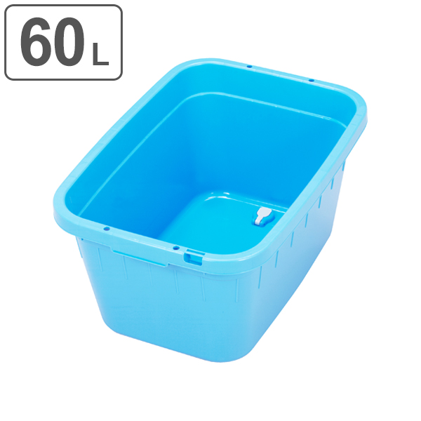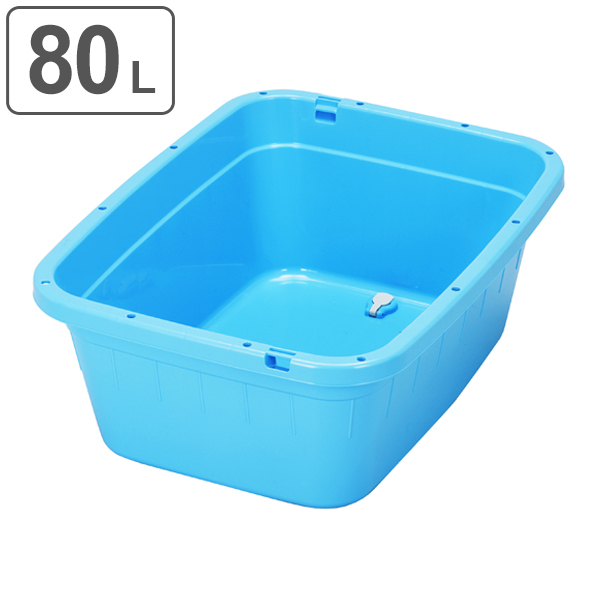 角型タライ 120L 水抜き栓付き ( 角型 タライ 120リットル 幅66 奥行86 高さ34cm 大容量 アウトドア キャンプ 園芸 ガーデニング 掃除 洗濯 収納 水遊び ペット ホース止め 排水栓 ブルー 日本製 )