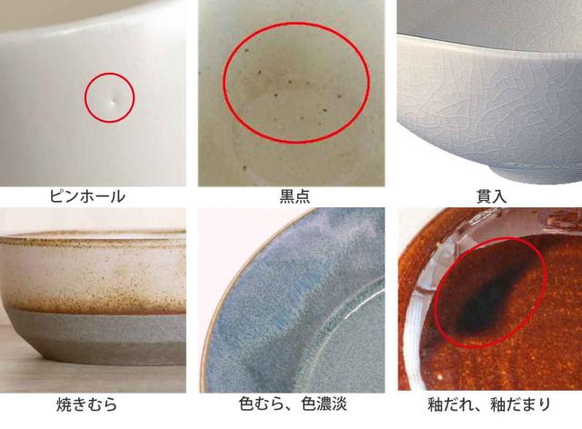 原料や製造方法により、上記のような特性がみられる場合があります。ひとつひとつのうつわの持つ個性、温かみある風合いとしてお楽しみいただければ幸いです。
