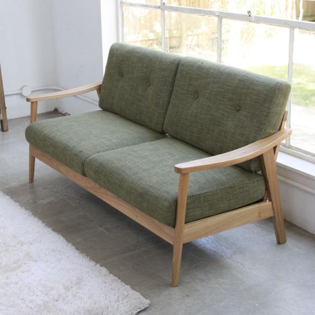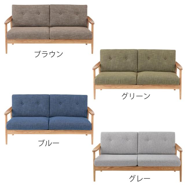 ソファ 3人掛け 幅167cm 天然木フレーム バッスム ( 北欧 ファブリック 布張り 木製 ひじ掛け リビング ブラウン グリーン ブルー グレー )