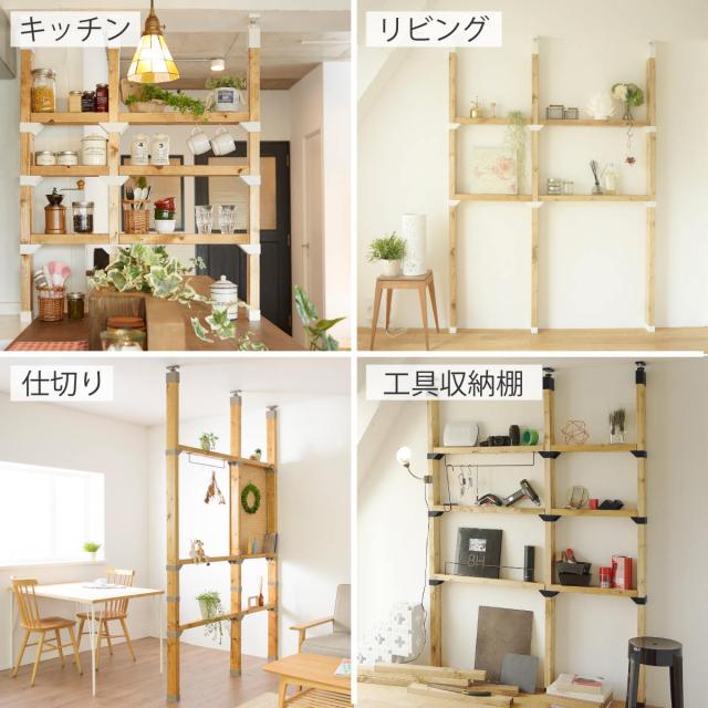 「LABRICO(ラブリコ)シリーズ」は特別な技術がなくても、安全で簡単に楽しめるDIY収納パーツです。ホームセンターで必要な木材を買ってパーツを組み合わせれば、柱や棚が作れます。安心・安全に配慮した商品設計で、壁や床を大きく傷つけず、住まいに合わせた自由なサイズで設置が可能です。DIYを経験したことがない方から経験豊富な方まで、多くの方が利用できます。