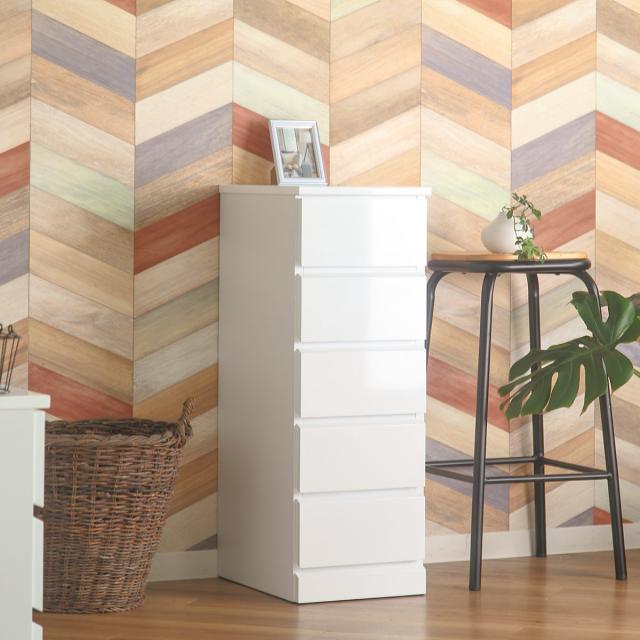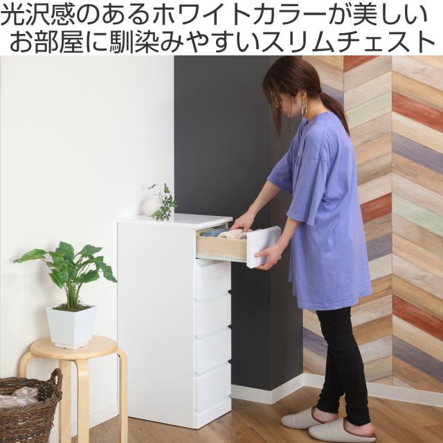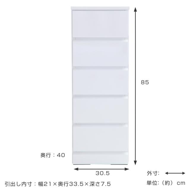 スリムチェスト 5段 鏡面仕上げ 幅30cm ( 収納 チェスト スリム 完成品 タンス 白 ホワイト リビングチェスト たんす リビング収納 衣類収納 引き出し おしゃれ リビング 小物収納 木製 洋服タンス コンパクト 子供部屋 )