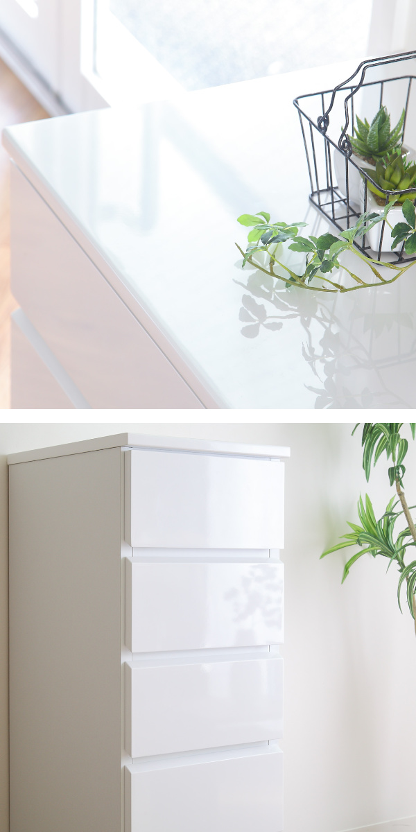 光沢感のあるホワイトカラーが美しいスリムチェスト