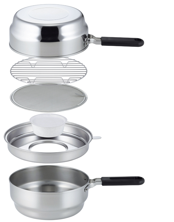 | 材質 | 鍋・目皿・油切りアミ:ステンレス鋼 バットアミ:鉄 取っ手:フェノール樹脂 |