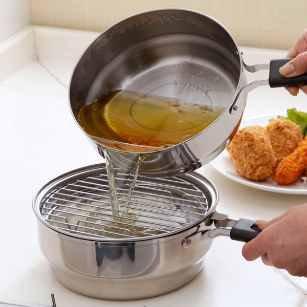 2個組の鍋は別々で料理に使うもよし、片方はオイルポットとして油切りに使ってもよしです。