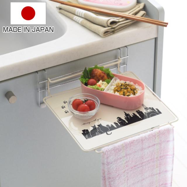 タオル掛け クロネコキッチン シンク扉簡易テーブル ( 日本製 タオルハンガー 補助テーブル キッチン雑貨 布巾掛け ふきんハンガー フキン掛け キッチン用品 黒猫 ねこ ネコ )