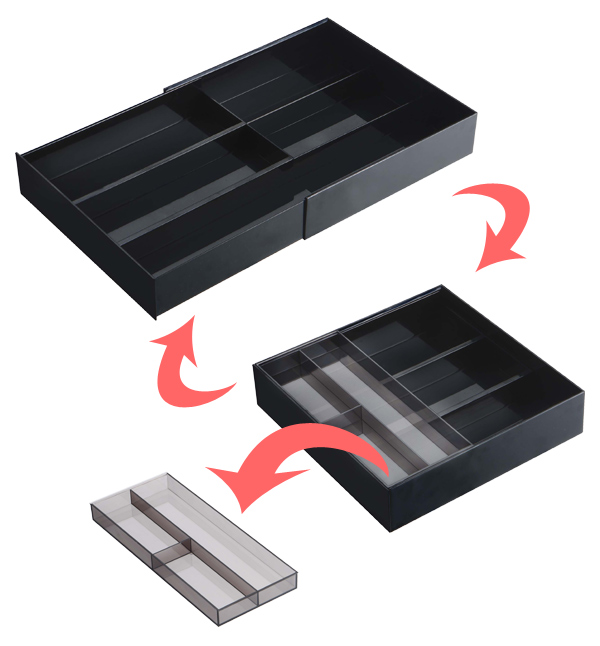 引き出しのサイズに合わせてぴったりフィットする伸縮トレー