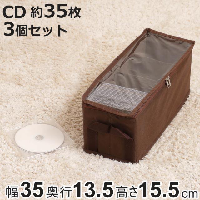 収納ボックス CDサイズ 幅35×奥行13.5×高さ15.5cm メディア収納 布製 3個セット ( 収納ケース 収納 CD収納 ゲームソフト収納 仕切り 底板 透明窓付き 保管 布 不織布 ファブリック ゲームソフト CD 3DS DS PS ソフト )