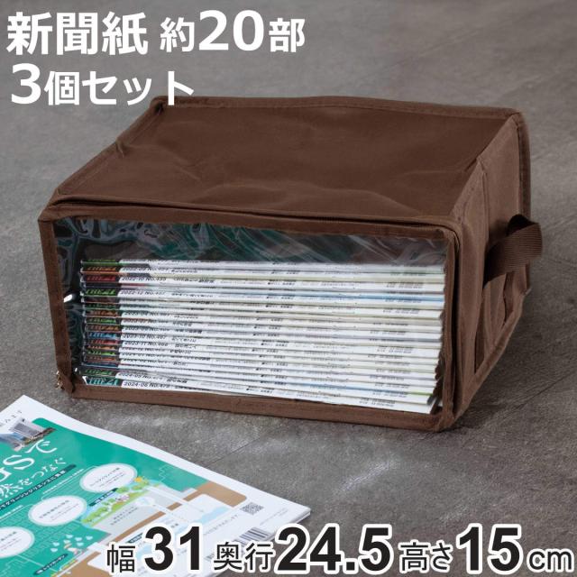 収納ボックス 新聞紙・雑誌サイズ 幅31×奥行24.5×高さ15cm メディア収納 布製 3個セット ( 収納ケース 収納 コミック収納 同人誌 B5 雑誌 本 平積み 保管 新聞紙 新聞 ストッカー ノート B5サイズ 布 不織布 ファブリック 透明窓 )