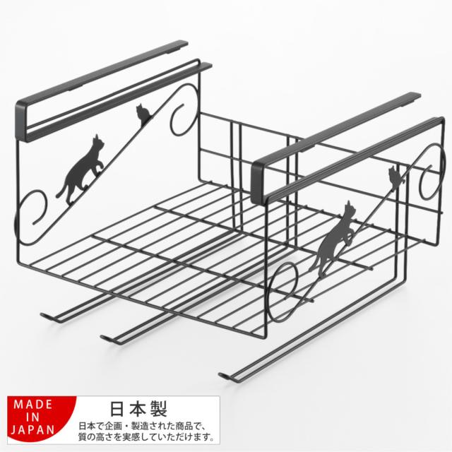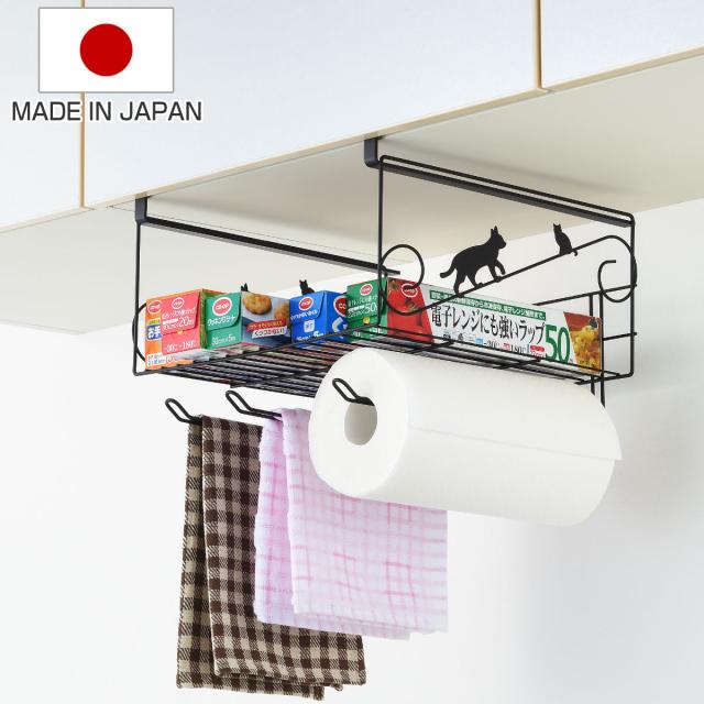 収納ラック ネコの吊り戸棚下ラック ( 日本製 吊下げラック 吊り戸棚下 ワイヤーボックス 吊り戸棚下収納 キッチン収納 収納棚 キッチンラック 戸棚収納 小物収納 ペーパーホルダー ふきん掛け )