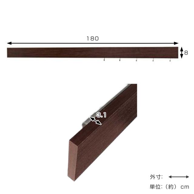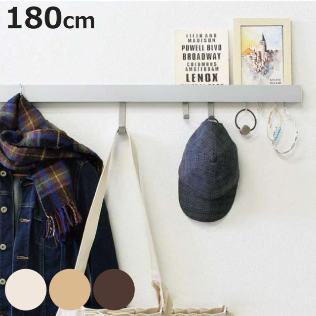 壁掛け ハンガーフック 幅180cm 奥行3cm 木目調 壁面収納 レール フック 長押風 ( フック付き ウォールハンガー コートハンガー ハンガー掛け 壁面 収納 壁掛けハンガー 壁掛けフック 玄関収納 洋服掛け コート掛け リビング収納 )