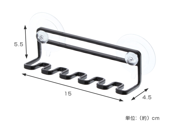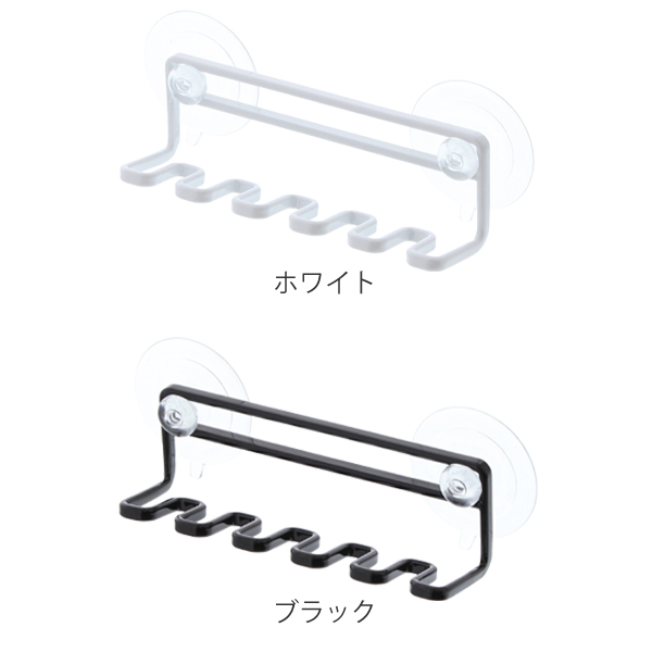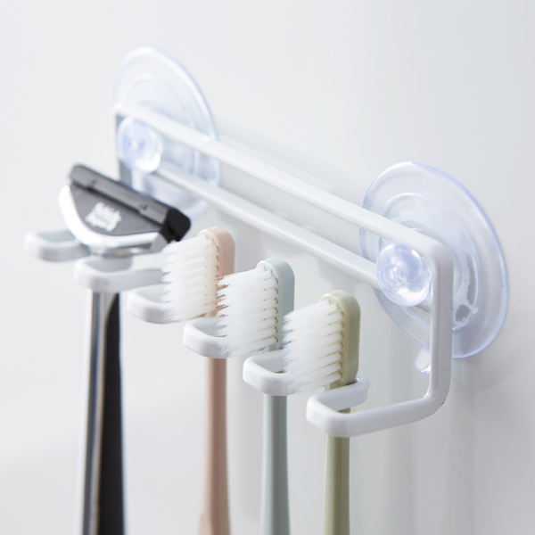 吸盤で簡単取り付けの歯ブラシホルダーです。洗面所のシンク周りやお風呂場の壁面などに歯ブラシ5本をコンパクトに収納できます。家族一人一人の収納にとても便利です。