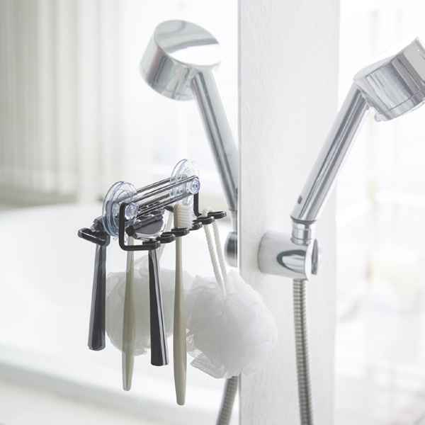 バス小物、電動歯ブラシ用替えブラシの保管にもお使い頂けます。シェーバーやバス小物を掛けたりすることもできます。耐荷重/フック1つあたり:約250g