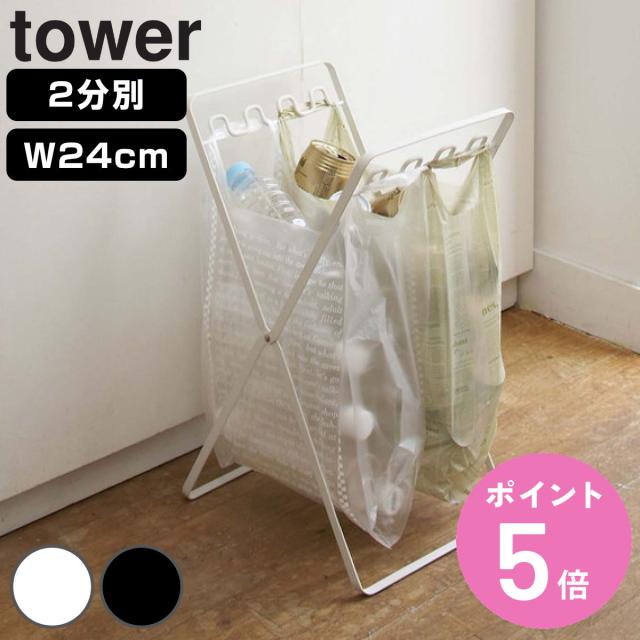 tower 山崎実業 レジ袋スタンド 2分別 幅24cm タワー ( レジ袋 スタンド 634 ゴミ箱 分別 スリム 引っ掛ける キッチン ゴミ袋スタンド ゴミ箱 分別)