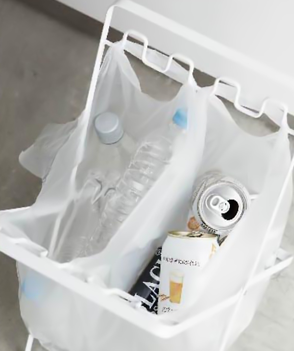 レジ袋をかけて、手軽にゴミの分別ができるスタンドです。フレームだけのスタイリッシュなフォルムなので、空間の雰囲気を邪魔せず、キッチンはもちろん、リビングでも使いやすいです。