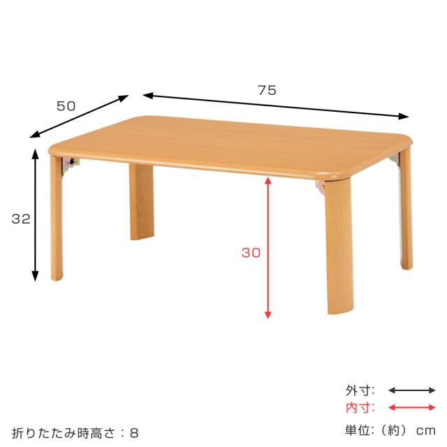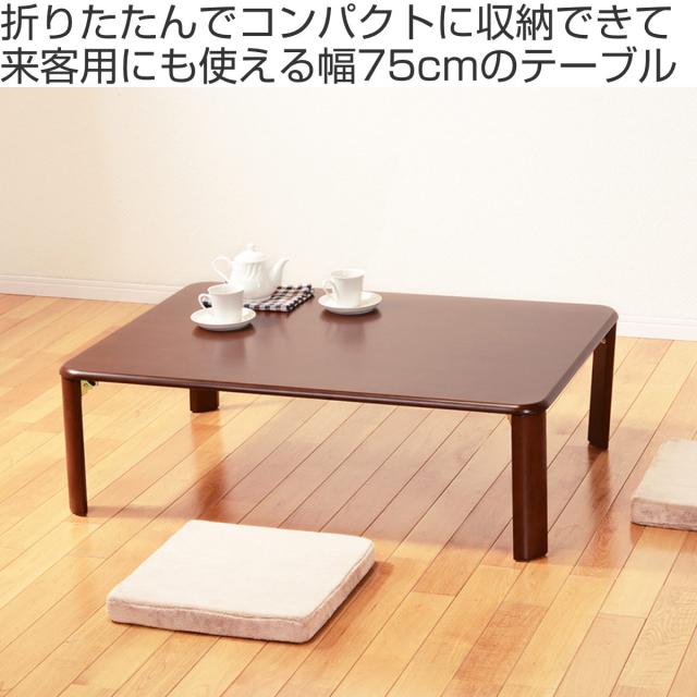 ローテーブル 幅75cm 折りたたみ 折れ脚テーブル ( センターテーブル リビングテーブル テーブル 長方形 シンプル コンパクト 木目 ナチュラル ダークブラウン )