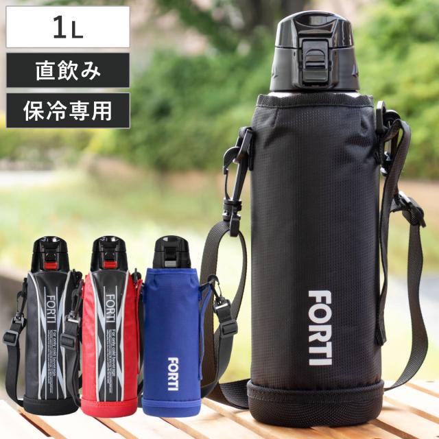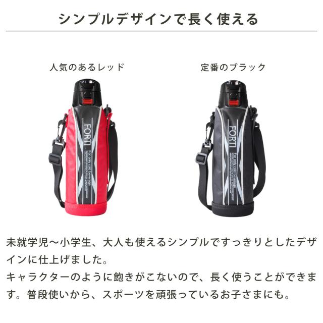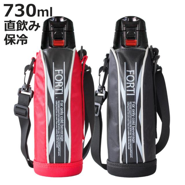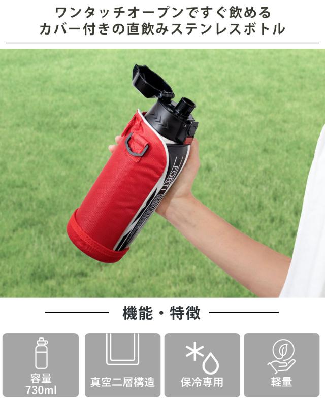 水筒 730ml ステンレス 直飲み ワンタッチ 保冷 NEWフォルティ ブラック レッド カバー付 ( ダイレクトボトル ステンレスボトル スポーツボトル シンプル 保冷専用 直のみ ショルダーベルト 子供 すいとう ボトル )