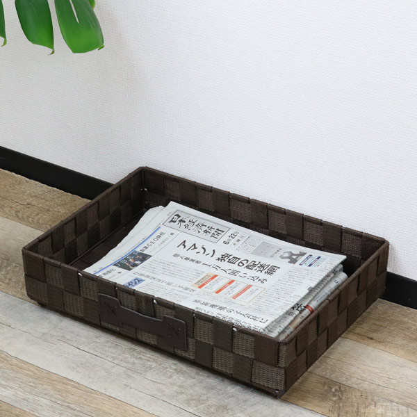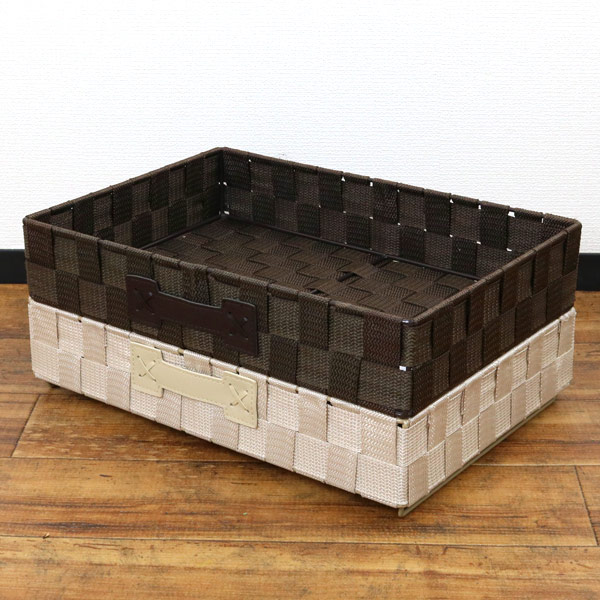 ポリプロピレン合成素材のテープを編み込んでいます。通気性が良く衣類の収納にもおすすめです。