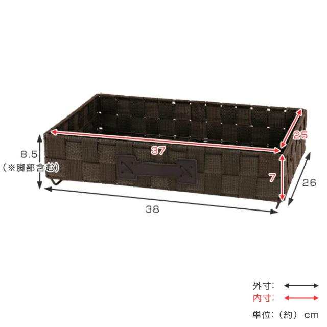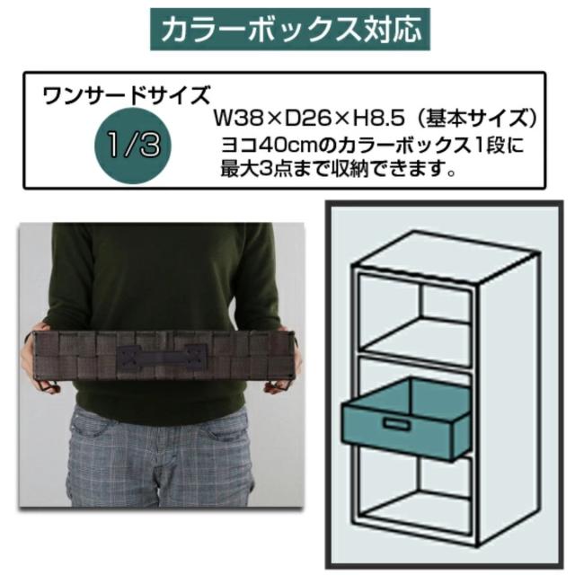 収納ボックス 1/3サイズ テープバスケット 幅38×奥行26×高さ8cm ( カラーボックス インナーボックス 収納ケース バスケット 収納 ボックス 小物収納 スタッキング 積み重ね BOX インナーケース 浅型 かご カゴ ケース A4 )
