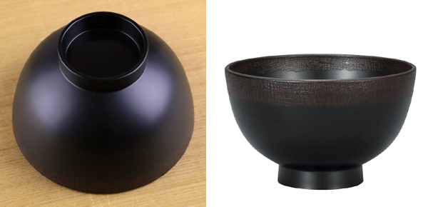 お椀の縁のみ布目塗りという手法で塗られおり、少しザラっとした質感。布目の風合いを楽しめます。
