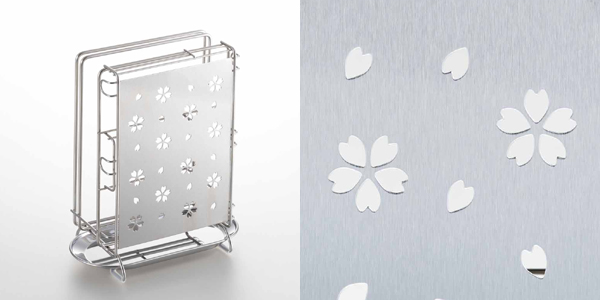 錆びにくく丈夫なステンレス製でお手入れもら楽々。シンプルなステンレスに桜柄が上品で華やかです。