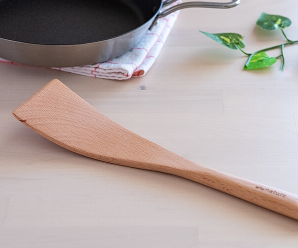 木製なので、フライパンや鍋を傷つけずに「まぜる(炒める)、すくう、盛り付ける、ひっくり返す」という4つの作業をすることができるので安心です。